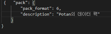 - 데이터팩의 설명, 적용 버전을 보여주는 곳으로 이 파일을 통해 마인크래프트가 데이터팩을 인식합니다.