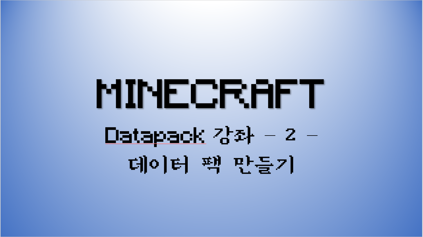 데이터팩은 리소스팩과 마찬가지로 3개의 파일로 구성됩니다. pack.mcmeta의 경우 간단하게 txt파일을 만든 다음 확장자를 수정해주세요.