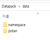 각각의 namespace 폴더 안에는 데이터팩의 구성 요소가 들어갑니다.