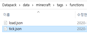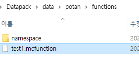 functions 폴더에 들어갈 수 있는 구성요소입니다. 이름은 자유이며 함수 파일의 확장자는 .mcfunction입니다.