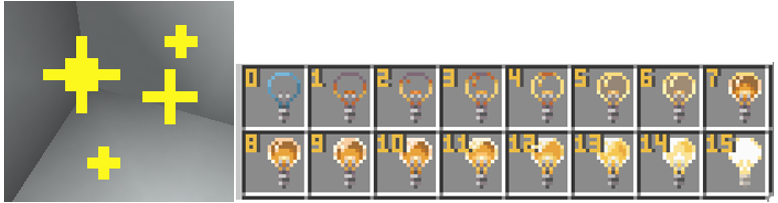 - 빛 블록 아이템을 들고 빛 블록에 우클릭해 밝기를 조절할 수 있습니다.
