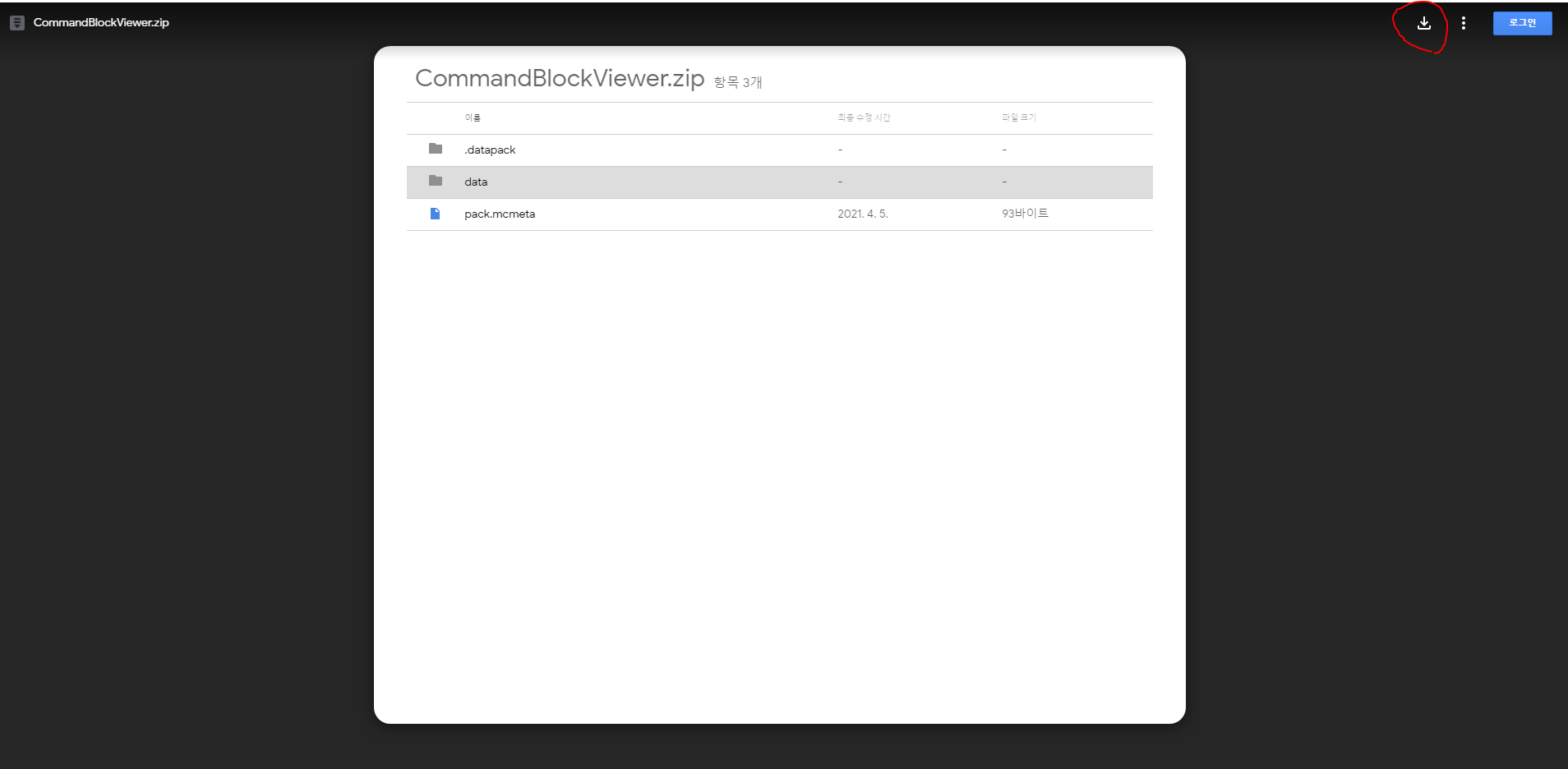 2. 오른쪽위 다운로드 버튼을 누른다.
