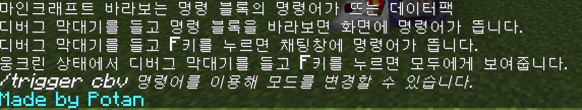 바라보고 있는 커맨드블럭의 커맨드를 표시해주는 데이터팩입니다.