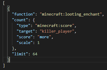 12. looting_enchant ? - killer 엔티티의 약탈 레벨에 비례해 추가 아이템을 부여합니다.