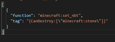 - "{nbt 태그}"로 이루어지며 내부 "는 \"로 작성해야합니다.