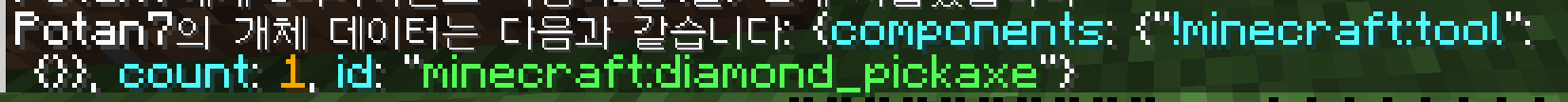 - /give @s diamond_pickaxe[!minecraft:tool] : tool 구성요소가 제거된 다이아몬드 곡괭이를 얻습니다.