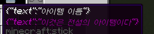 - 기존: minecraft:lore=["{\"text\":\"이것은 전설의 아이템이다\"}"]
