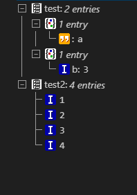 - 위 데이터와 test2:[1, 2, 3, 4]를 같이 저장했을때 NBT 파일을 열어본 결과입니다.