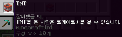 - /give @p tnt[attribute_modifiers=[{id:"waypoint_receive_range",type:"waypoint_receive_range",amount:-10,operation:"add_multiplied_base",slot:"any",display:{type:"override",value:"TNT를 든 사람은 로케이트바를 볼 수 없습니다."}}]] 1