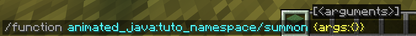 우선 가장 먼저 소환을 시켜봅시다. animated_java:<네임스페이스>/summon 함수로 소환할 수 있습니다.
