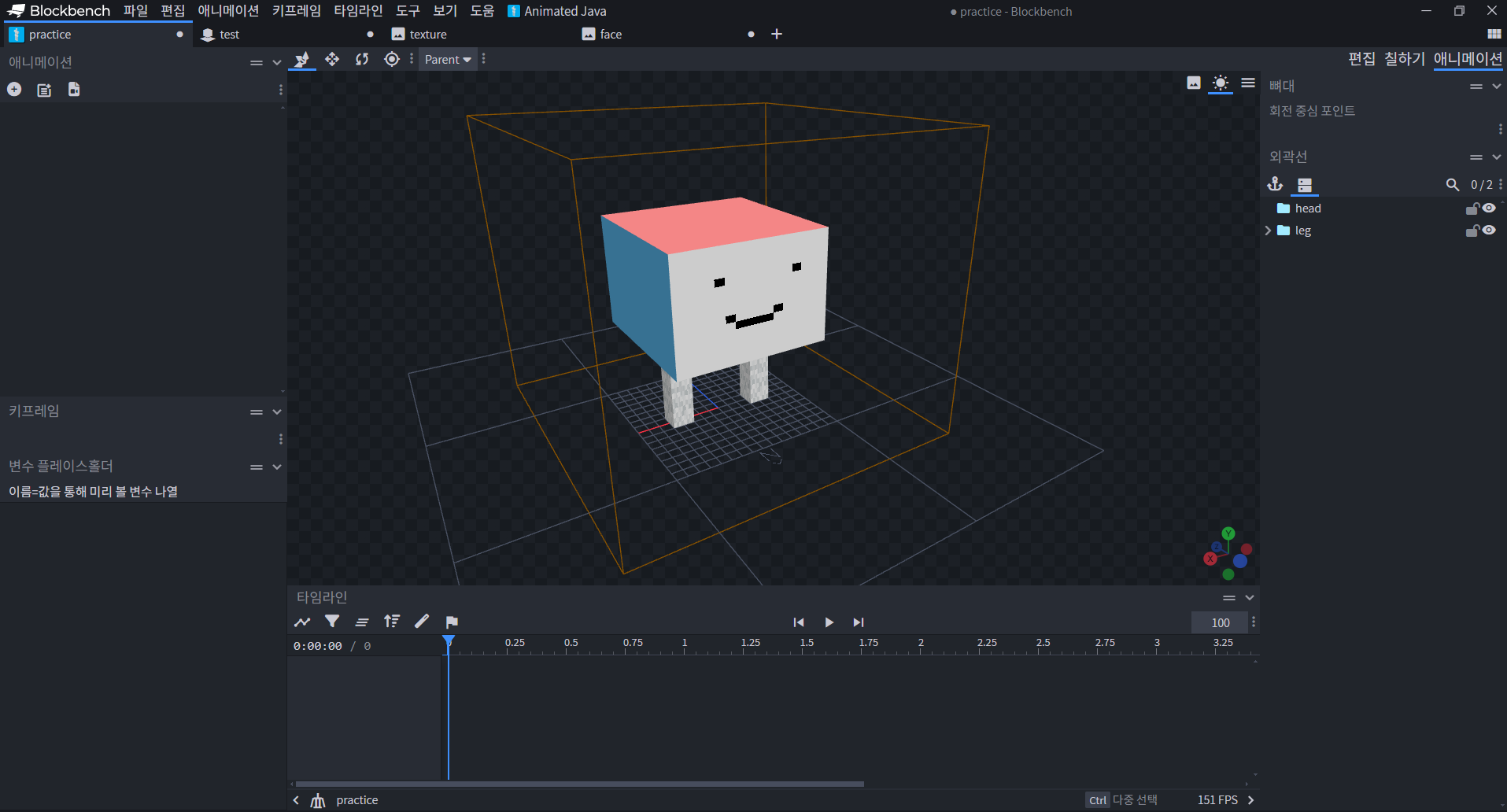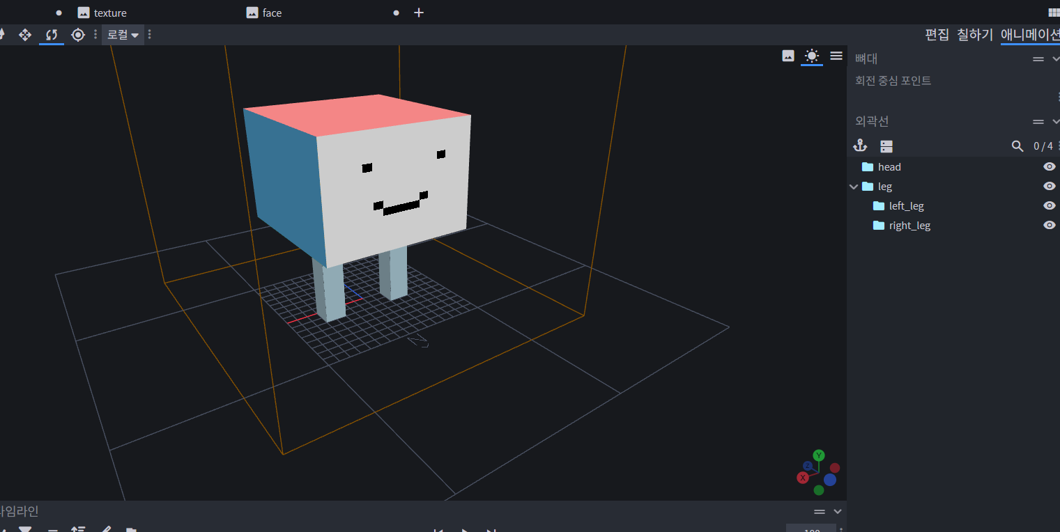 대충 큐브 3개랑 텍스쳐 2개로 만든 캐릭터입니다. 귀엽죠?