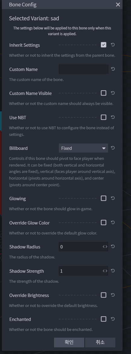 variant(변종)는 animated java에서 지원하는 텍스쳐, NBT 변경 기능입니다.